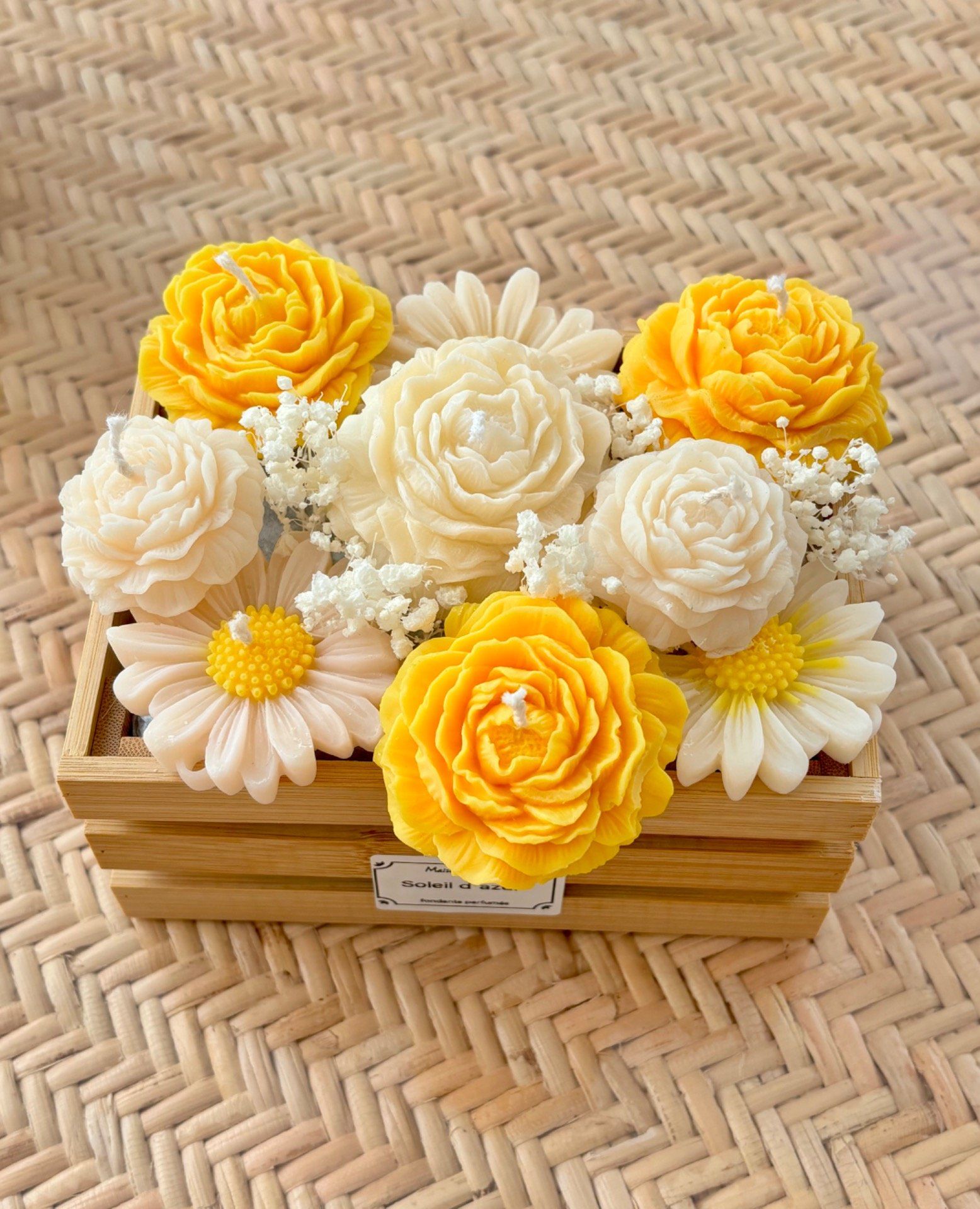 Offrez une touche d’authenticité et de douceur avec notre bouquet parfumé présenté dans une charmante cagette en bois. Une composition harmonieuse de fleurs délicates sublimées par un parfum raffiné qui embaume subtilement votre intérieur.